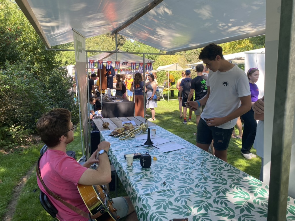 Dan zijn de nieuwe studenten alweer een maand lang in Wageningen te vinden! Op de AID kunnen studentmuzikanten in de band je vertellen hoe het is om mee te doen in de Big Band Sound of Science. Dus kom langs bij de kraam op het AID terrein en ontmoet Geert, Mathijs of Ivan! En als je aardig speelt en hebt wel zin, kom dan naar het Hooilandplein om sfeer tijdens een optreden te proeven.